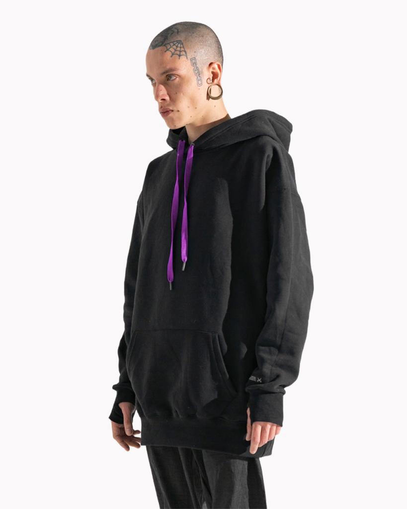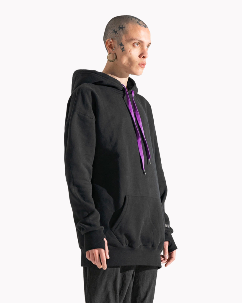 Buzo hoodie calce oversize. Ajuste de capucha por ojalillos con cordón bordado Luxo. Tajo en puños para pasar pulgares. Tela friza 100% algodón. Textura afelpada y suave. Producto de uso unisex.